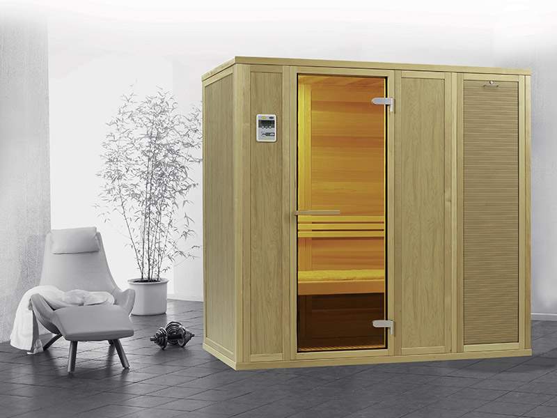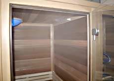 Внутренняя отделка выполнена исключительно из красного канадского кедра, материала обладающего антисептическими свойствами и неповторимым ароматом эфирных масел, содержащихся в нем. Уникальное оптическое свойство канадского кедра отражать большую часть тепловых лучей позволяет добиться эффективного и равномерного распространения тепла внутри кабины. По праву считается лучшим из существующих материалов для любых саун.